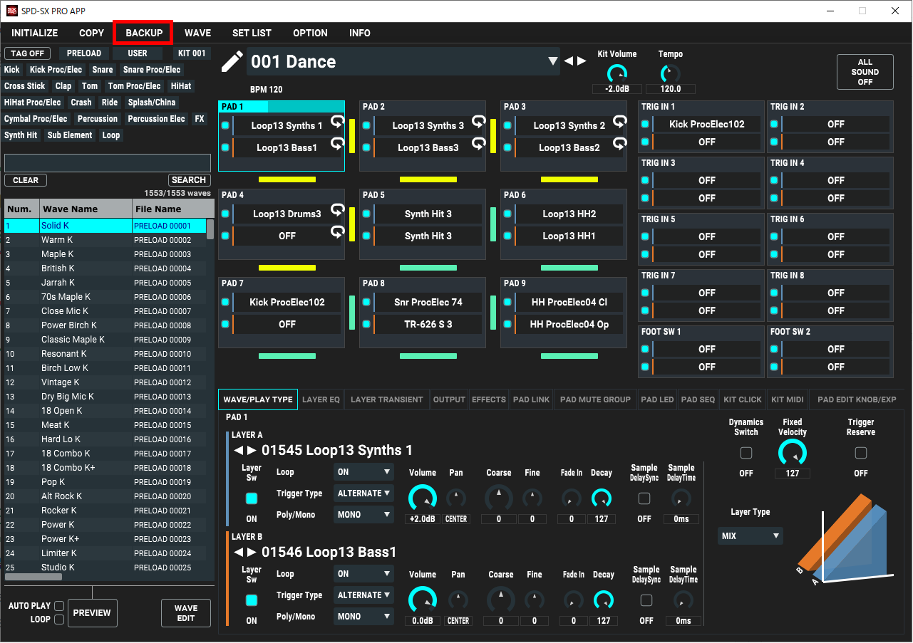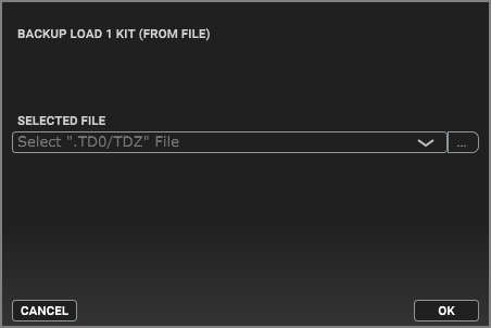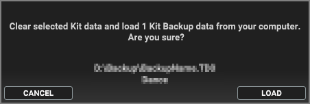 This shows how to load the kit settings (including the waves used by the kit) from the kit backup data that’s saved on your computer.