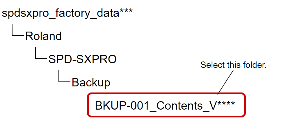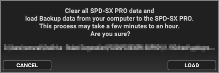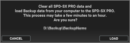 You can specify and execute the factory settings you downloaded (SPD-SX PRO FACTORY RESTORE DATA) in BACKUP - LOAD ALL.