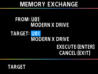 - The MEMORY EXCHANGE screen appears.