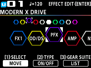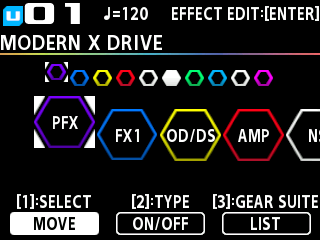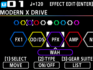 - Ruotate la manopola [1] per selezionare l’effetto che volete spostare.