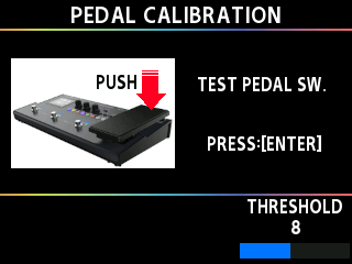 - Se desiderate modificare la sensibilità di illuminazione dell’indicatore PEDAL FX, regolate il valore THRESHOLD utilizzando la manopola [3] e premete ripetutamente la punta del pedale fino a raggiungere la sensibilità desiderata.