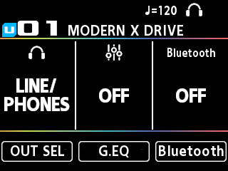 此模式显示输出选择、全局 EQ 与 Bluetooth 设置。
