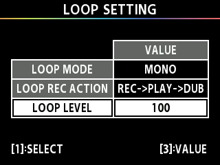 - 按下 [å] [ä] 按键将光标移至“LOOP SETTING”行。