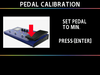 - 将显示 PEDAL CALIBRATION 屏幕。