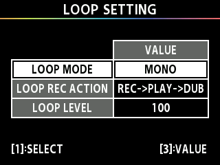 - 按下 [å] [ä] 按键将光标移至“LOOP SETTING”行。