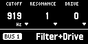エフェクト・ボタン([FILTER+DRIVE]ボタンなど)を押してエフェクトをオンにすると、エフェクト・エディット画面が表示されます。