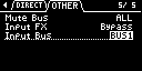 DRY BUS 1、BUS 2へは送りません(BUS 1、BUS 2のエフェクトは使用しません)。 BUS1、BUS2 BUS 1、またはBUS 2へ送ります。BUS 1、BUS 2に設定されたエフェクトを使います。 [VALUE]つまみを回してバスを選び、[VALUE]つまみを押します。