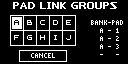 PAD LINK GROUPS機能は、複数のパッド(最大4つ)を1つのグループにする機能です。あらかじめグループを設定しておくと、ひとつのパッドの操作だけで同じグループのパッドを同時に再生することができます。