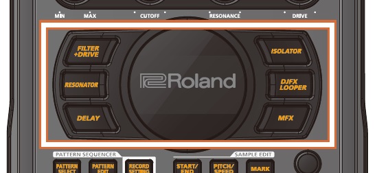 SP-404MK2に内蔵されたさまざまなエフェクトで、再生する音に特殊な効果をかけることができます。