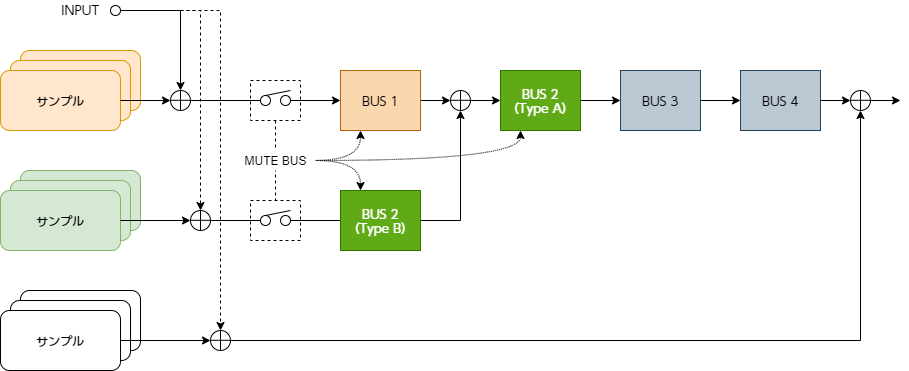 以下は、MUTE BUSを使ったときの音声の流れを表しています。