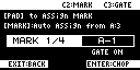 - [CTRL 2]つまみ - サンプルを分割するマーカーを選びます。 - [CTRL 3]つまみ - GATEのオン/オフを変更します。 - [VALUE]つまみを回す - 分割したサンプルを、[VALUE]つまみで選んだパッドの番号を先頭にして、順番に配置します。[MARK]ボタンを押すと、配置が決まります。 - この操作はサンプルを割り当てるパッドを決めただけで、まだサンプルの割り当てはされていません。サンプルをパッドに割り当てるには、最後に[VALUE]つまみを押す操作が必要です。