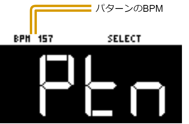 - [PATTERN SELECT]ボタンを押します。 - SELECT画面が表示されます。  - パターンが割り当てられているパッドは紫点灯します。