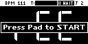 - 赤点滅しているパッド[1]~[16]を押します。 - サンプルが割り当てられていない空パッドが、赤点滅します。 - 空パッドを押すと、「Press Pad to START」と表示されます。記録されているパターンのパッドが青点滅します。