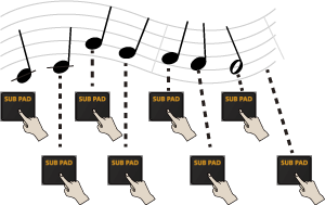 - ビートに合わせて、[SUB PAD]ボタンを何回か押します。