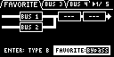 - [CTRL 3]つまみを回して「FAVORITE」を選び、[VALUE]つまみを押します。 - [VALUE]つまみを押すたびに、BUS 1とBUS 2に割り当てられたエフェクトの位置が変わります(「エフェクトを使う」)。