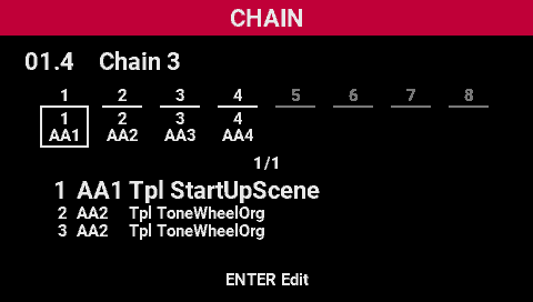 - Use the [SELECT] knob to select a scene chain, and press the [SELECT] knob.