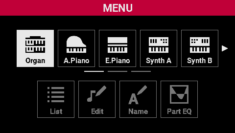 You can access the parameters except for the panel controller settings (which include the tone and system settings) from the MENU screen, as well as execute the utilities.