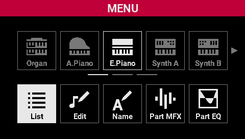 Part MFX | Configures the MFX settings for the E.Piano part. |