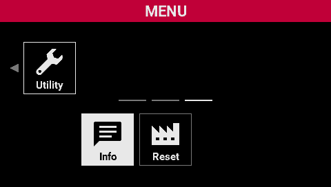 This screen displays the information for this instrument, and you can perform a factory reset.