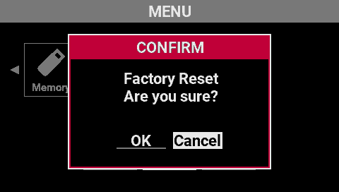 - This executes the factory reset. Never turn off the power while this operation is in progress.