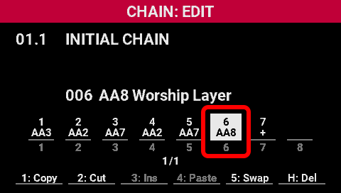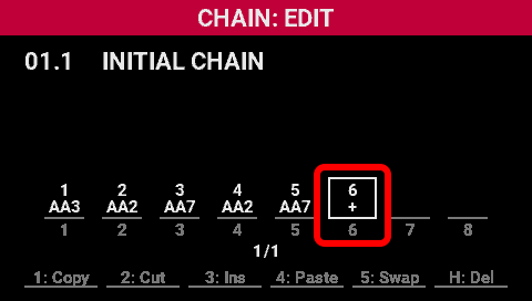 - Turn the [SELECT] knob to move the cursor to the end position in the chain.