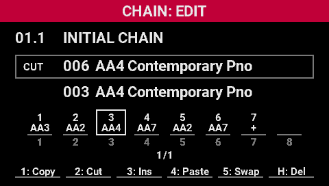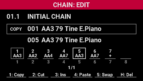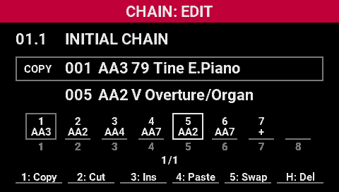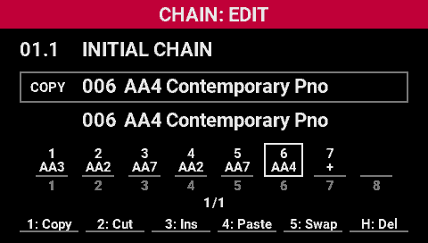 - Turn the [SELECT] knob to move the cursor to the copy source scene position in the chain.