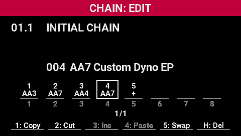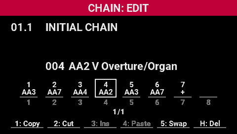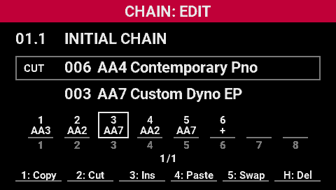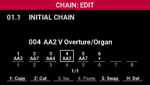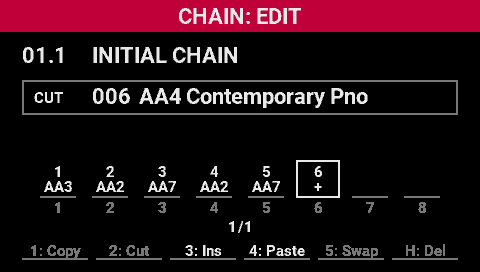 - Turn the [SELECT] knob to move the cursor where you want to insert the scene into the chain.