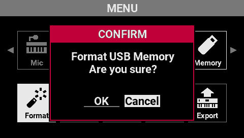 - Be sure to initialize the USB flash drive on this instrument with this function before you use it.