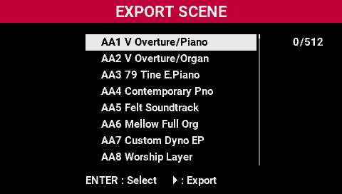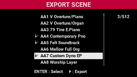 - Use the [SELECT] knob to select the scenes that you want to export.