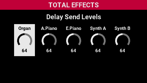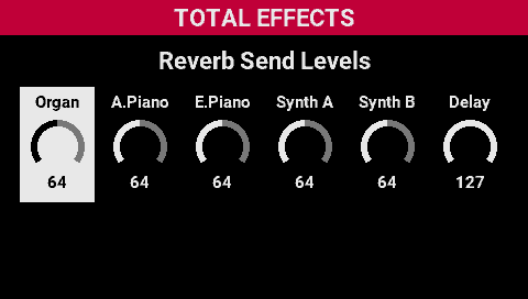 - This changes the amount of signal sent from the corresponding part to delay/reverb.