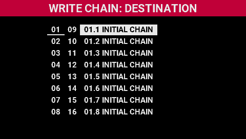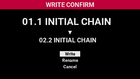 - On the CHAIN EDIT screen, press the [WRITE] button.
