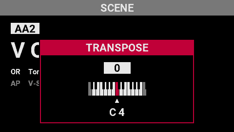 - The TRANSPOSE screen appears while the [TRANSPOSE] button is pressed.