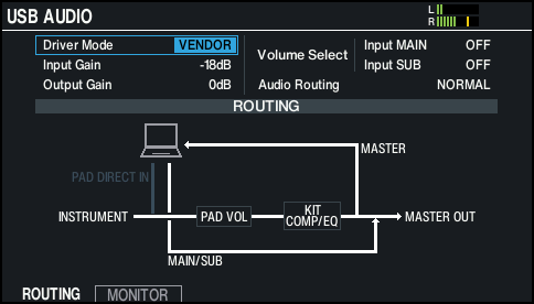 对于 USB 音频输入声音,可以从 INPUT MAIN 与 INPUT SUB 中选择输出目标。