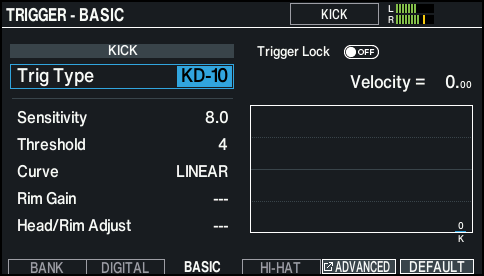 非常小的力度响应,可以轻而易举地维持强有力的音量效果。如果您使用鼓触发器作为外置打击垫,这些设置将产生可靠的触发。