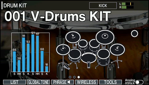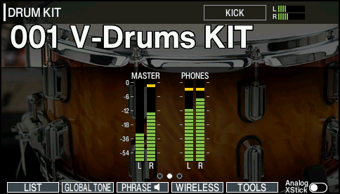 On the KIT screen, press the [Í] [Ë] buttons to display the output volume or the trigger signal level meter on the KIT screen.