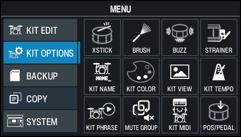 ドラム・キットに関するさまざまな設定をする(KIT OPTIONS)