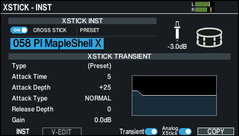 Here’s how to configure the sound of the cross stick on the instrument where you play with a cross stick technique.