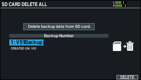 从 SD 卡删除备份数据 (DELETE/DELETE 1 KIT)