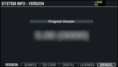选择 VERSION 选项卡后,按下 [F6] (MANUAL) 按键可显示一个二维码,您可以使用智能手机扫描此码,以便轻松访问 V51 网站与支持页面。