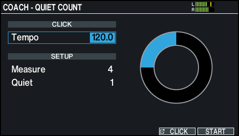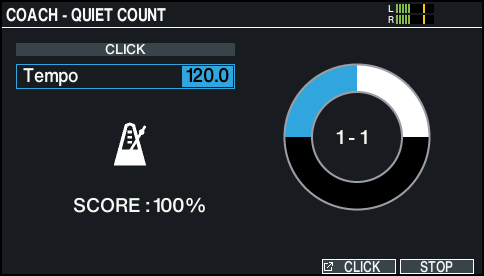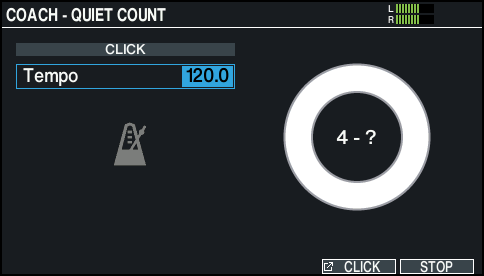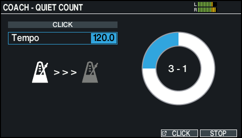 - For the first few bars, “” is displayed on the screen and a click is heard. When you reach the last measure during which the click plays, the “” icon is shown onscreen.