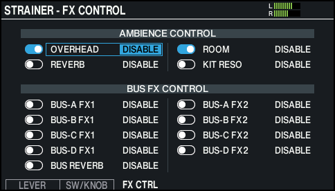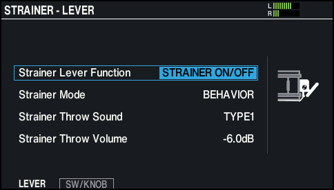 Configures the effect that’s assigned for controlling effects using the strainer lever (FX CONTROL).