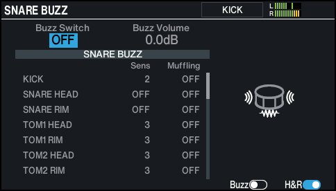 Configuring the resonance of the snare (SNARE BUZZ)