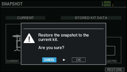 - Use the cursor buttons or the dial to select the drum kit settings to restore.