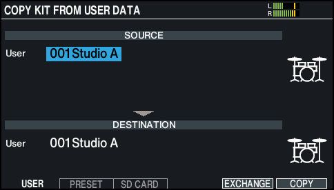 Copies from user memory. You can swap (exchange) the copy source and copy destination kits, but only if the copy source is in the User memory.