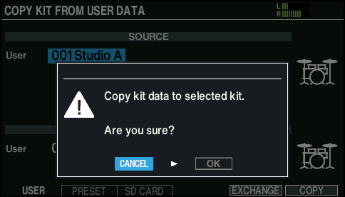 Copies drum kits of preset memory. Choose this if you want to return to the factory-set drum kit settings.