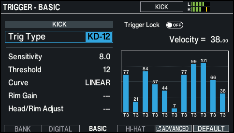 You can edit these settings if you want to make finer adjustments, or if you want to use an acoustic drum trigger.