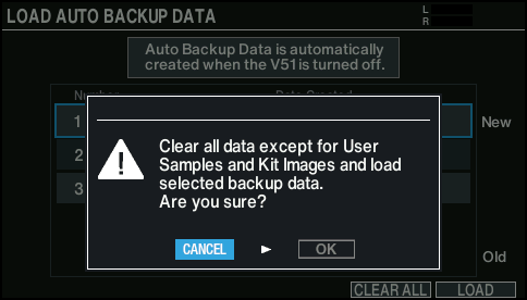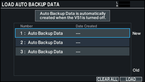 - The LOAD AUTO BACKUP DATA screen appears.