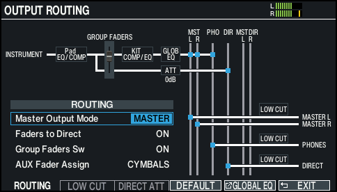 When “Master Out Mode” on the ROUTING tab is set to “DIRECT”, this is enabled for the MASTER OUT jacks as well.