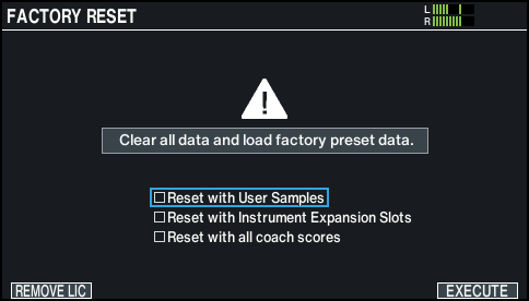 Selects whether to restore the Instrument Expansions and Kit Packs loaded into the slots to their factory settings.