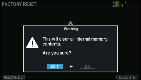 - Use the cursor buttons to select “FACTORY RESET”, and press the [ENTER] button.